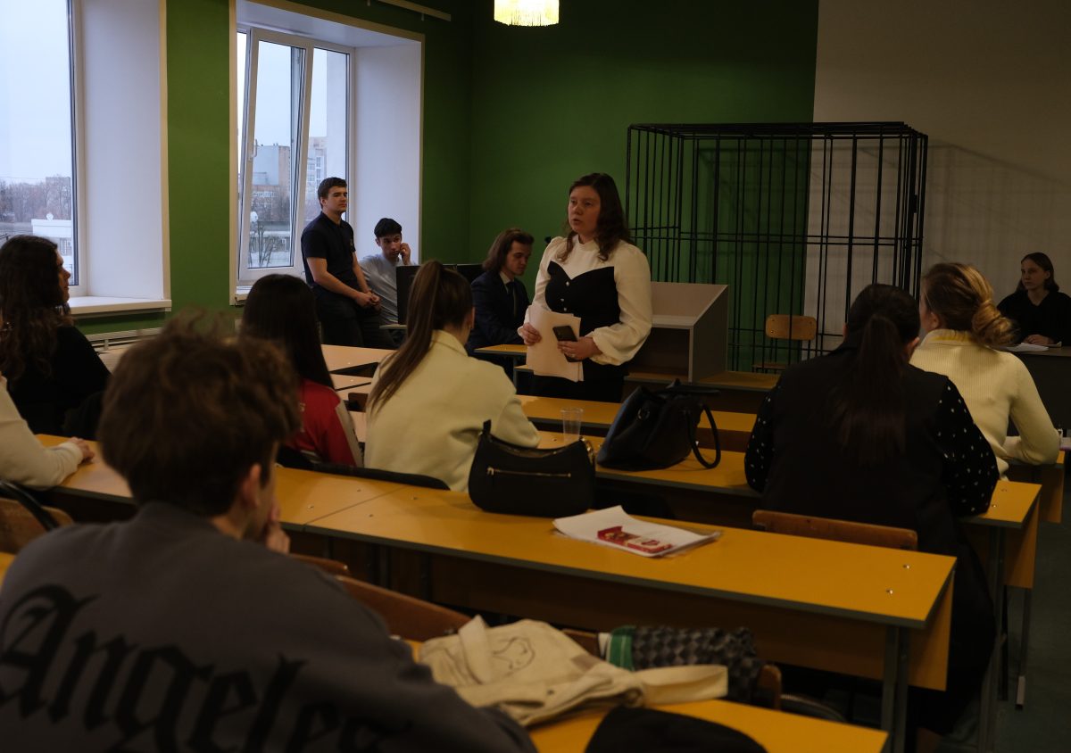Студенты-юристы второго курса устроили для школьников настоящее погружение в мир права: распределили роли, подготовили реквизит и воссоздали атмосферу судебного заседания. Ребята примерили на себя профессии судьи, адвокатов, прокурора и других участников процесса.