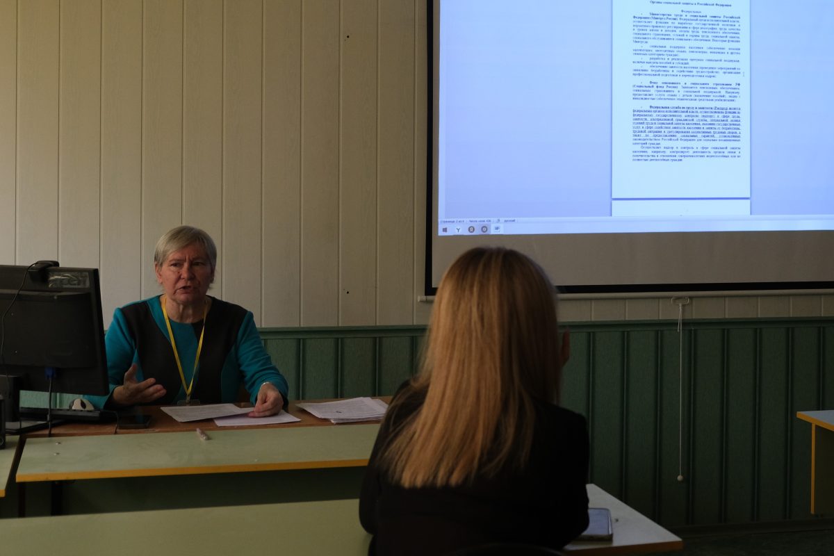 24 марта преподаватель Людмила Дмитриевна Микулина провела для студентов 1‑го и 2‑го курсов лекцию «Органы социальной защиты населения».